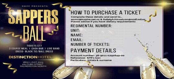 Further Information and Event Director Peter Mellalieu, Chair Northern | Sappers Association (New Zealand) Inc | +6421420118 | chr.nth.sprnz@mail.tidyhq.com